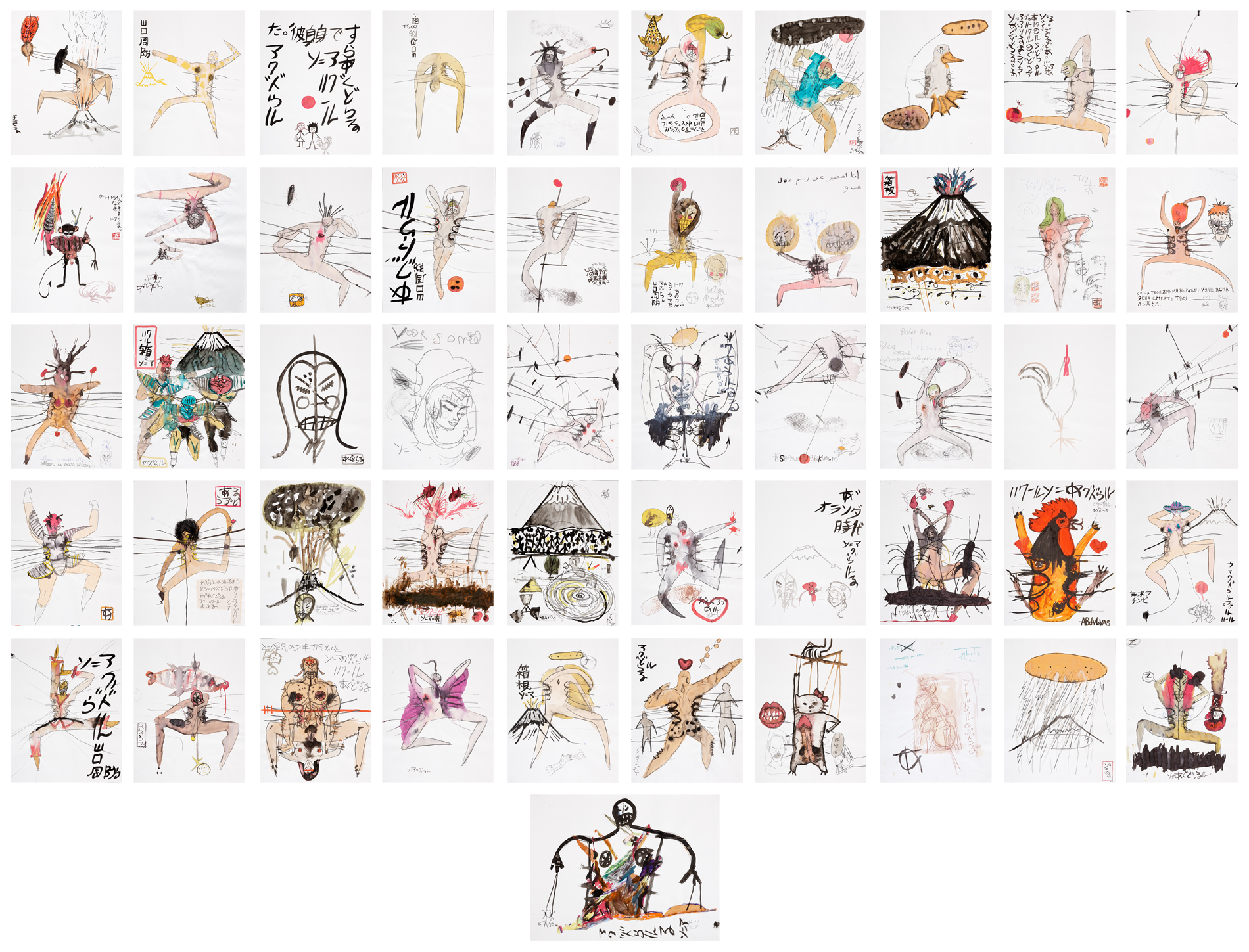 Battle of the Java Sea, 1999-2000 ink, oil, pencil, senok and watercolor on paper, Polyptych of 51, 25.5 x 19.6 in / 65 x 50 cm
